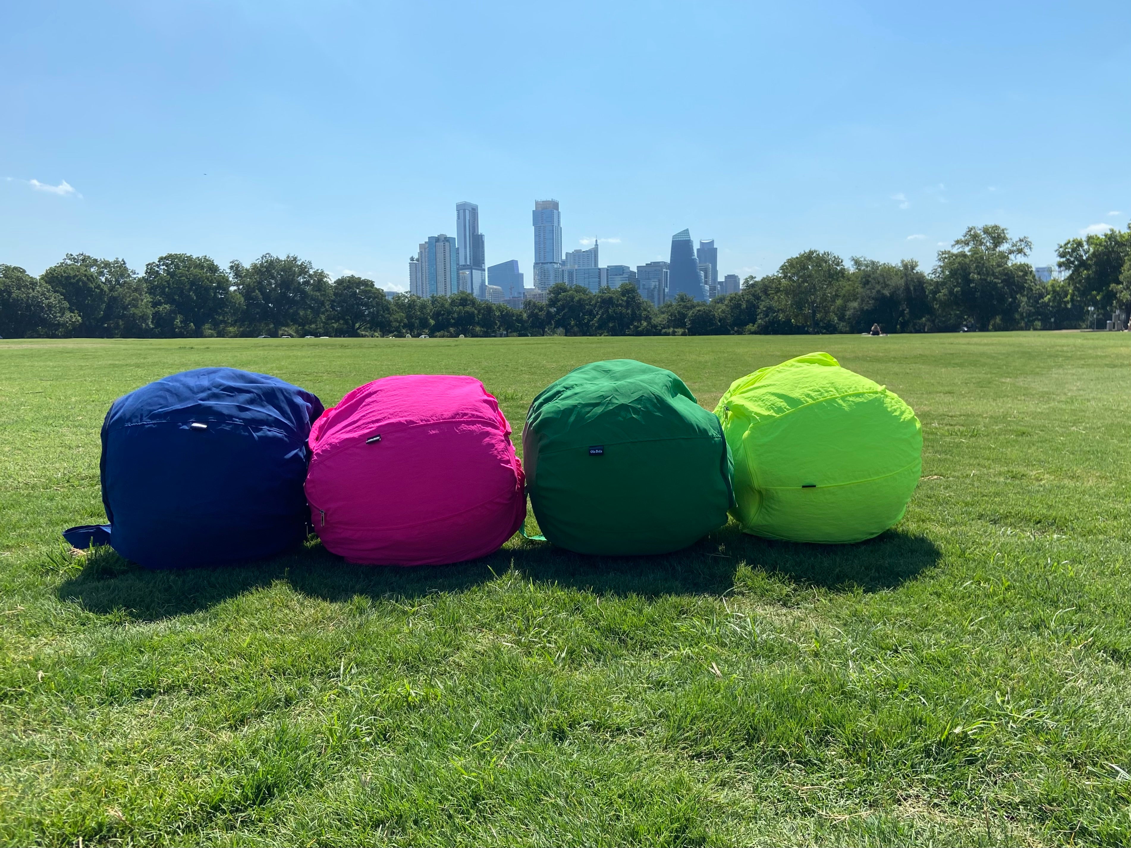 Ola Bola is the original travel-anywhere bean bag. Weighing just 1.5 pounds, this stylish water-resistant bean bag can even compress to fit under your airplane seat. Unlike cumbersome folding chairs or inflatable cushions which require additional set up, Ola Bola is quick and easy: just sling it over your shoulder and head out to the beach, a music festival, or wherever!