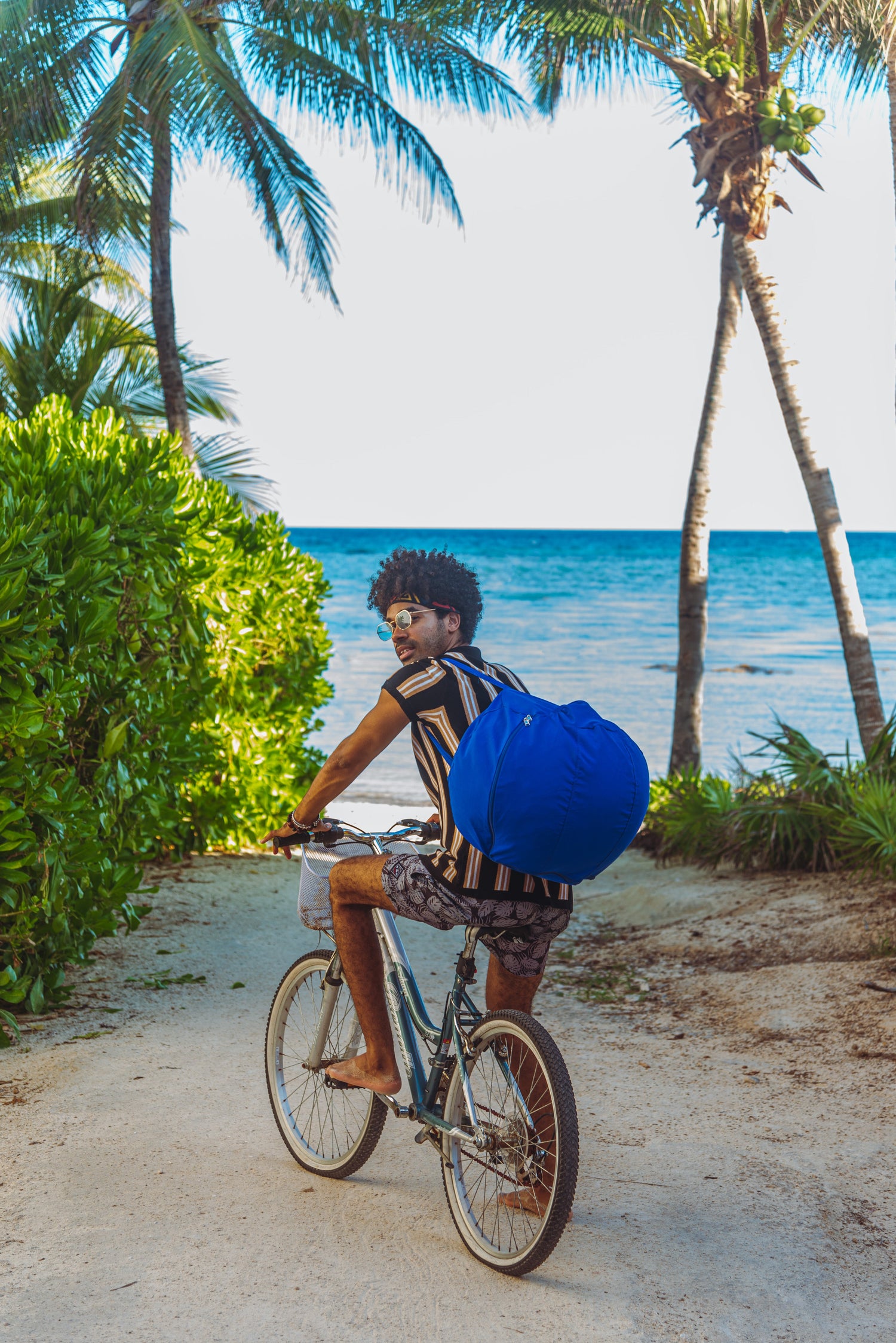 Ola Bola re-imagines portable comfort. Head to the beach or an outdoor event without hassle. No more bulk or lugging around unnecessary weight. Pack your keys, wallet, and phone in the zippered compartment and off you go on foot or your bike. Portable comfort. All around.